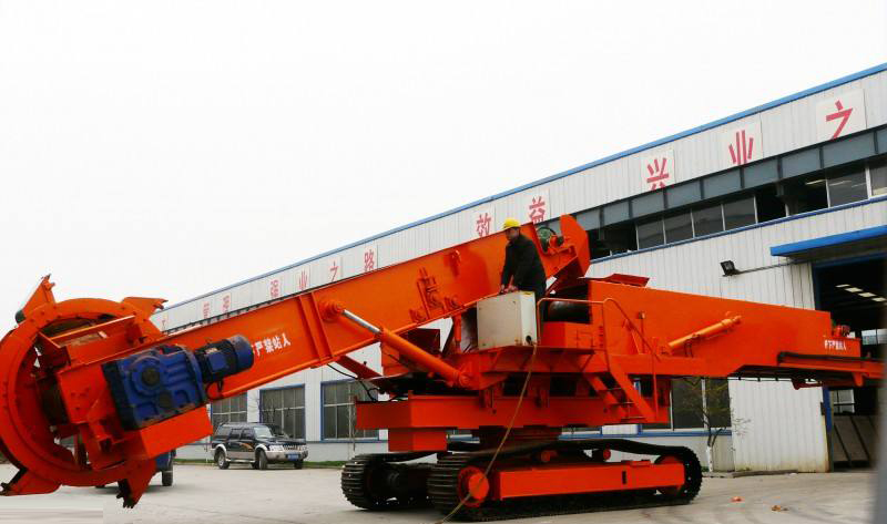 斗輪取料機,是指一種用于大型干散貨堆場的既能堆料又能取料的連續(xù)輸送的高效裝卸機械。由可俯仰和水平擺動的膠帶輸送臂及其前端的斗輪、機架、運行機構(gòu)組成,膠帶可雙向運行,取料時由斗輪取料經(jīng)輸送臂送出,堆料時則由主輸送機運來的貨物經(jīng)由輸送臂投向堆場。