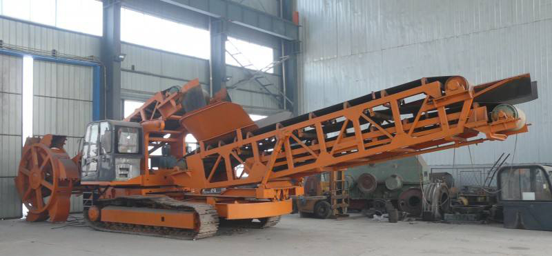 斗輪取料機(jī),是指一種用于大型干散貨堆場(chǎng)的既能堆料又能取料的連續(xù)輸送的高效裝卸機(jī)械。由可俯仰和水平擺動(dòng)的膠帶輸送臂及其前端的斗輪、機(jī)架、運(yùn)行機(jī)構(gòu)組成,膠帶可雙向運(yùn)行,取料時(shí)由斗輪取料經(jīng)輸送臂送出,堆料時(shí)則由主輸送機(jī)運(yùn)來(lái)的貨物經(jīng)由輸送臂投向堆場(chǎng)。